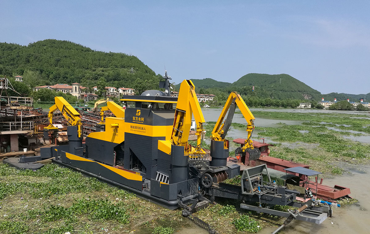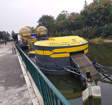 水电站、水库。排涝站、江河。湖泊、近海等水域受到树木、枝叶。庄稼杂草、塑料泡沫、生活垃圾等漂浮污染物的污染、严重影响水环境质量和工程的效益,为此,公司研发了具有多项自主知识产权的水利环保智能清污装备,主要包括水上智能清污机器人、栅前清污机器人、自适应栏乌导漂系统等系列产品。